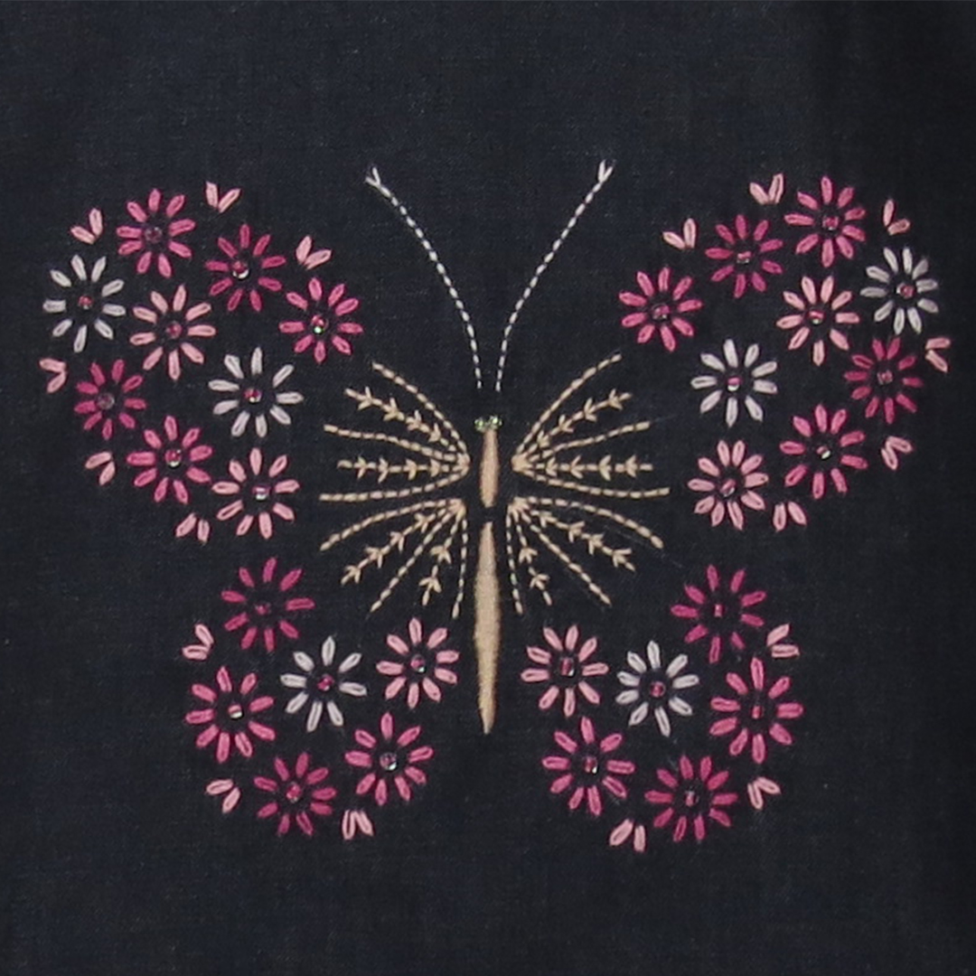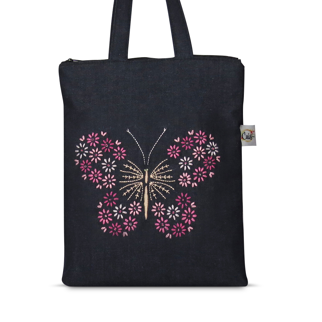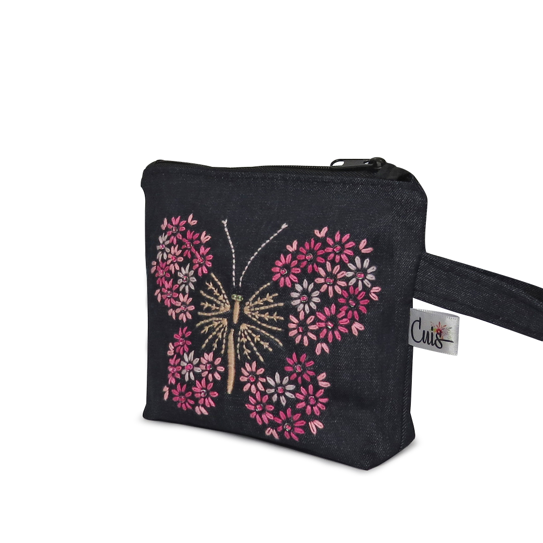 Bolsa y Estuche de mezclilla Bordada Mariposa Rosa