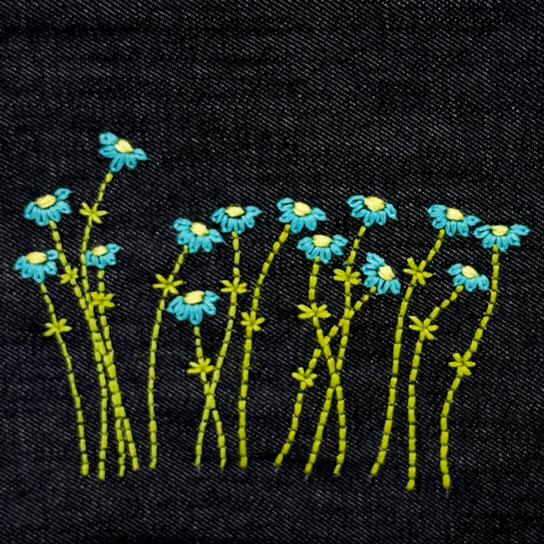 Cangurera bordada a mano en mezclilla. Práctica, lavable y única. Ideal para llevar llaves, celular y esenciales diarios. 19×15 cm – ¡Estilo y Funcionalidad en Tu Día a Día!